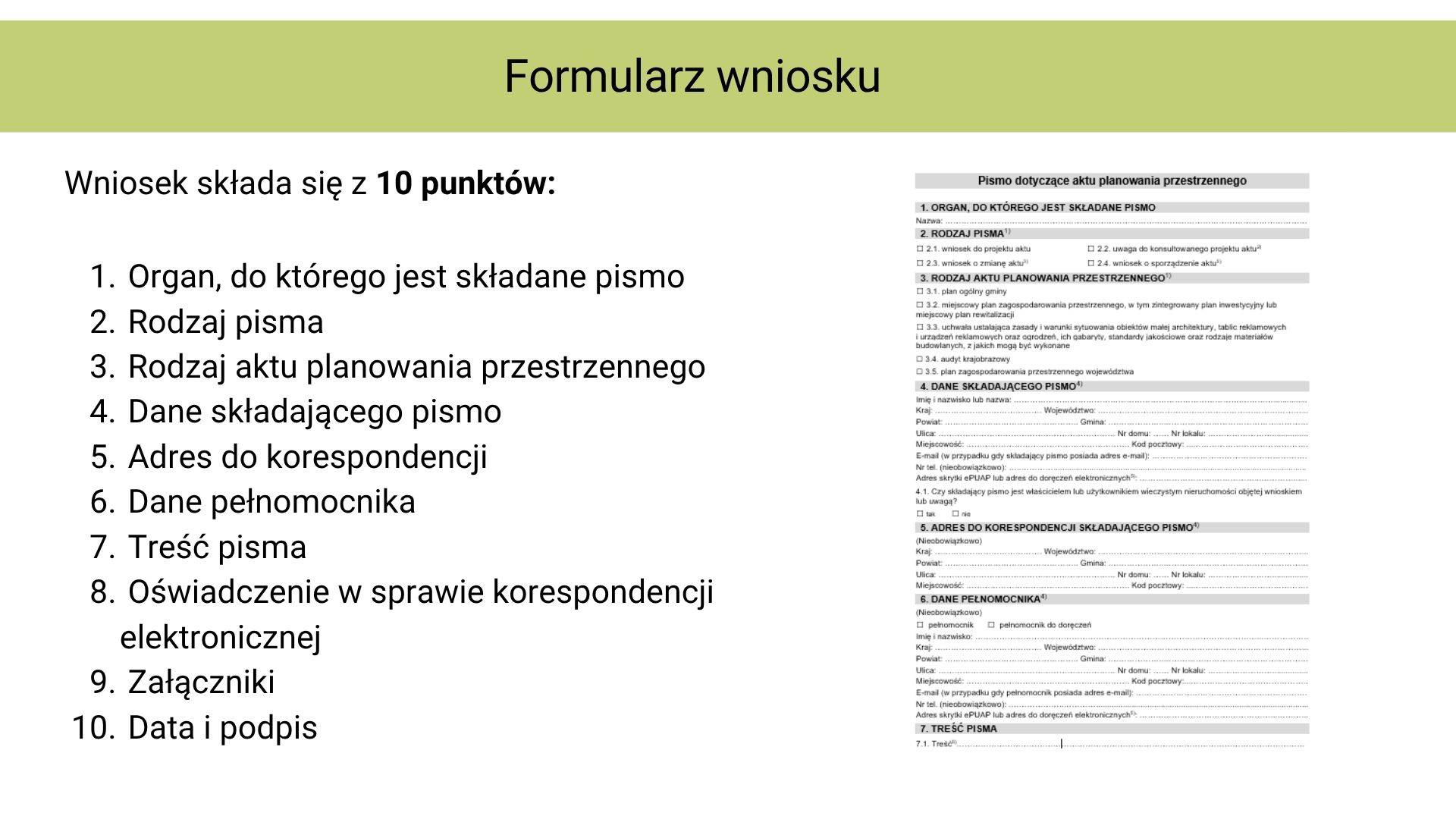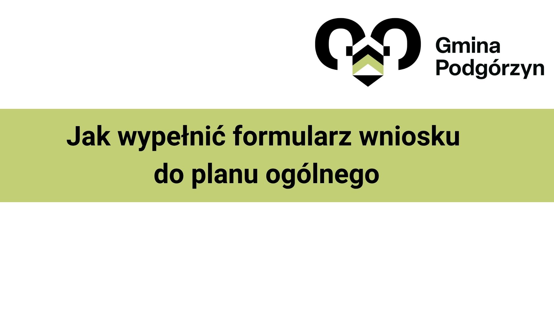 Wnioski należy składać wyłącznie na formularzu pisma dotyczącego aktu planowania przestrzennego, dostępnym w siedzibie Urzędu Gminy Podgórzyn oraz na stronie internetowej 👉 https://podgorzyn.bip.net.pl w zakładce planowanie przestrzenne -> druki do pobrania.